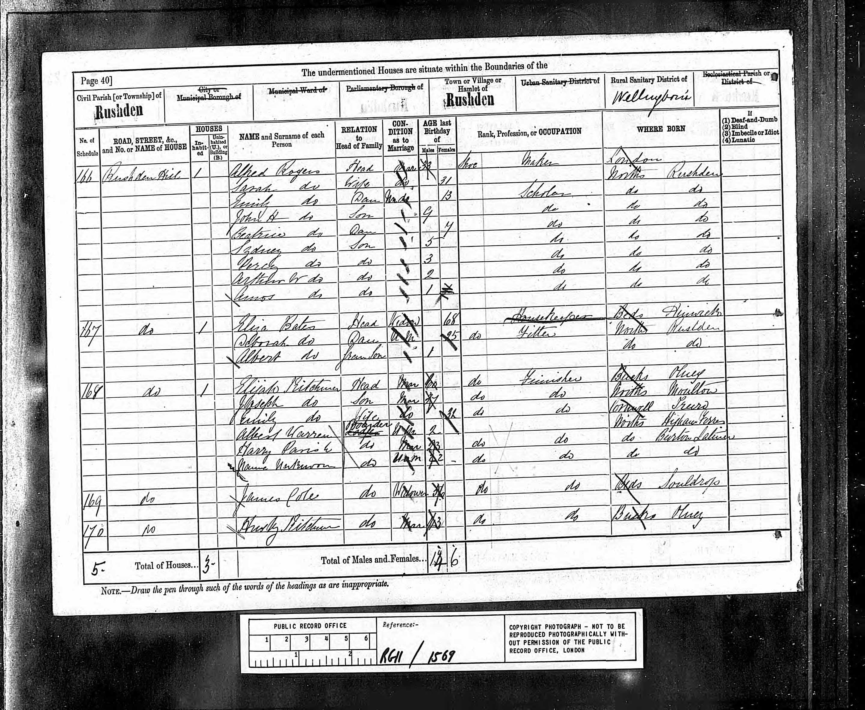- appeared in census on 3 Apr, 1881 in Rushden Hill, Rushden