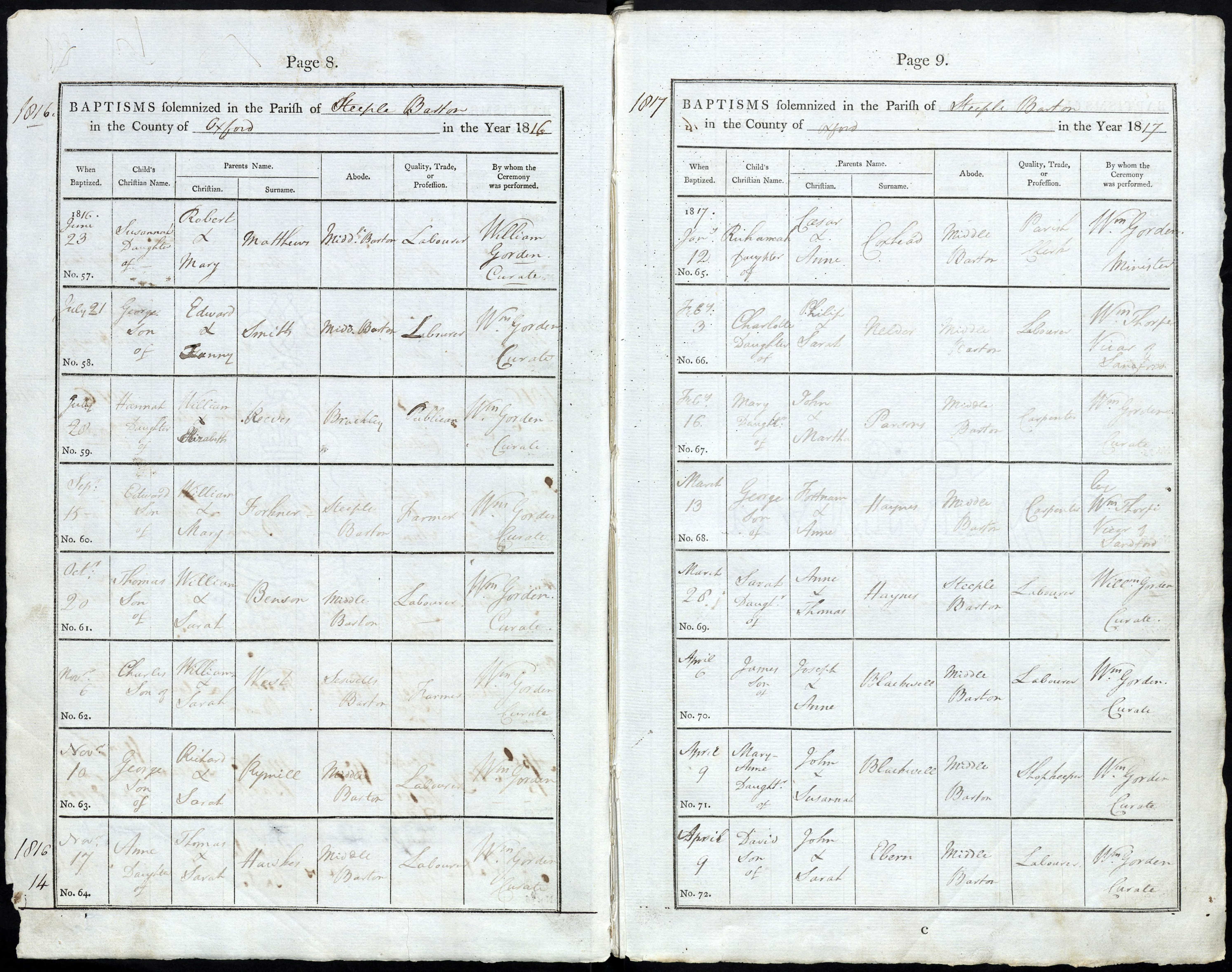 Cited from Parish Registers of St. Mary, Steeple Barton, Oxfordshire