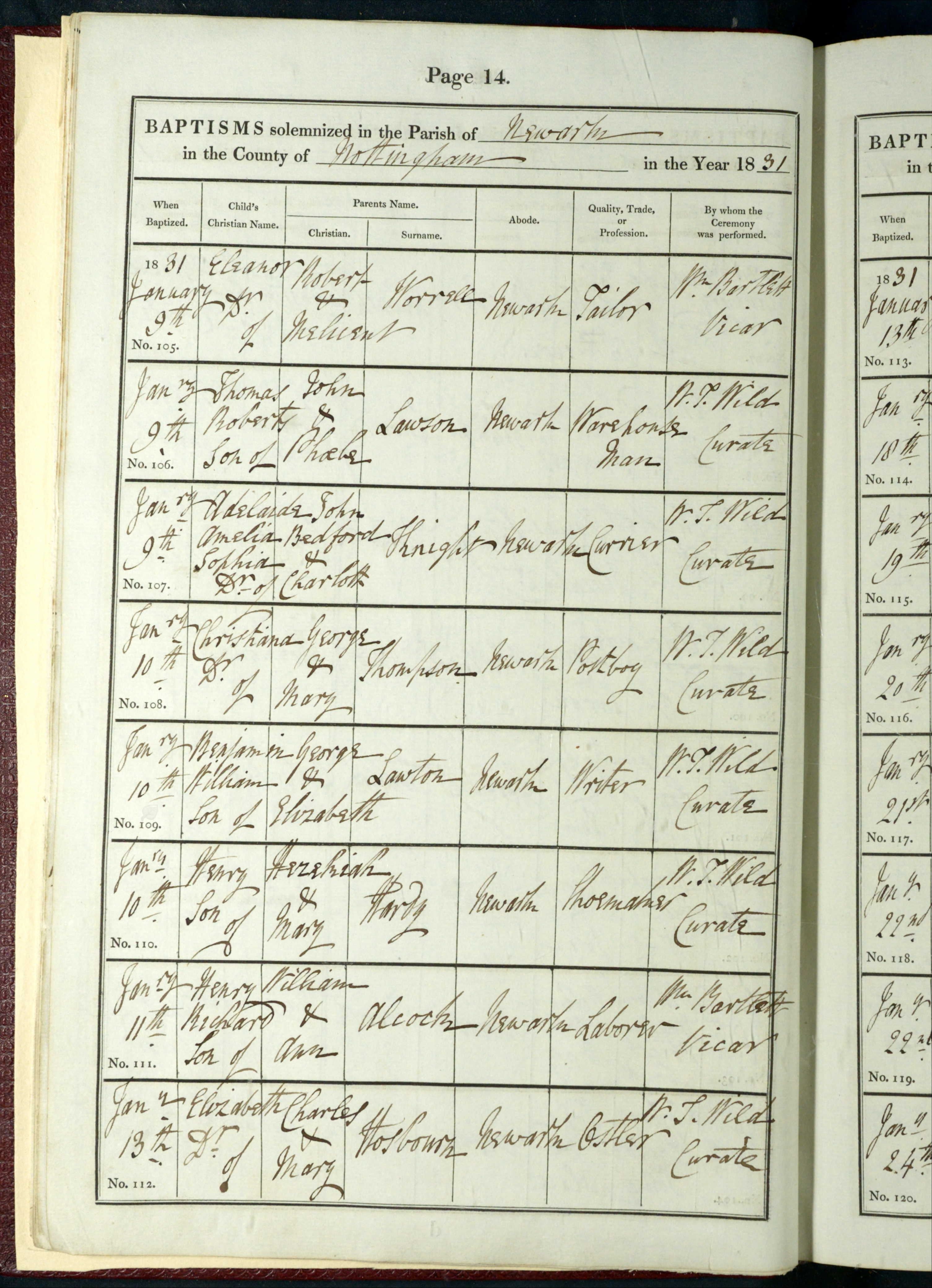 - William Alcock★ resided on 11 Jan, 1831 in Newark on Trent