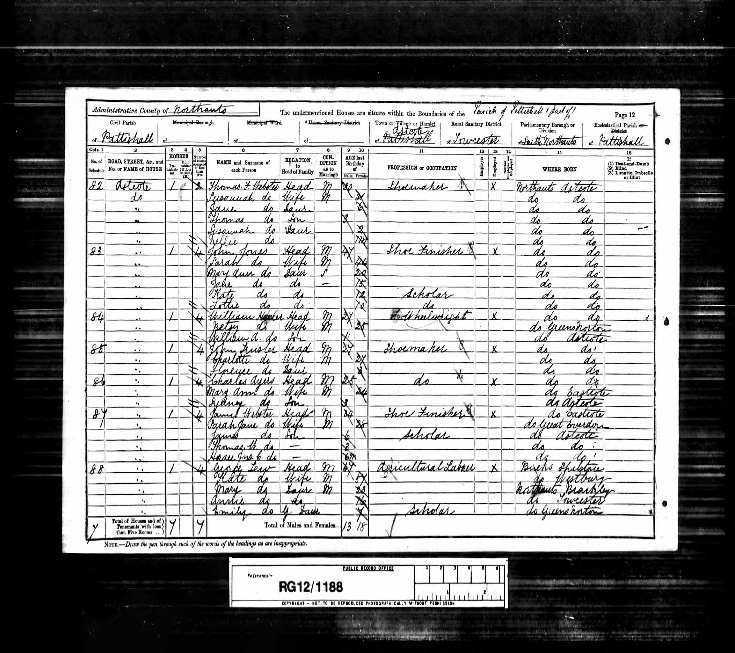 Class RG12, Piece 1188, Folio 29, Page 12, Schedule 88