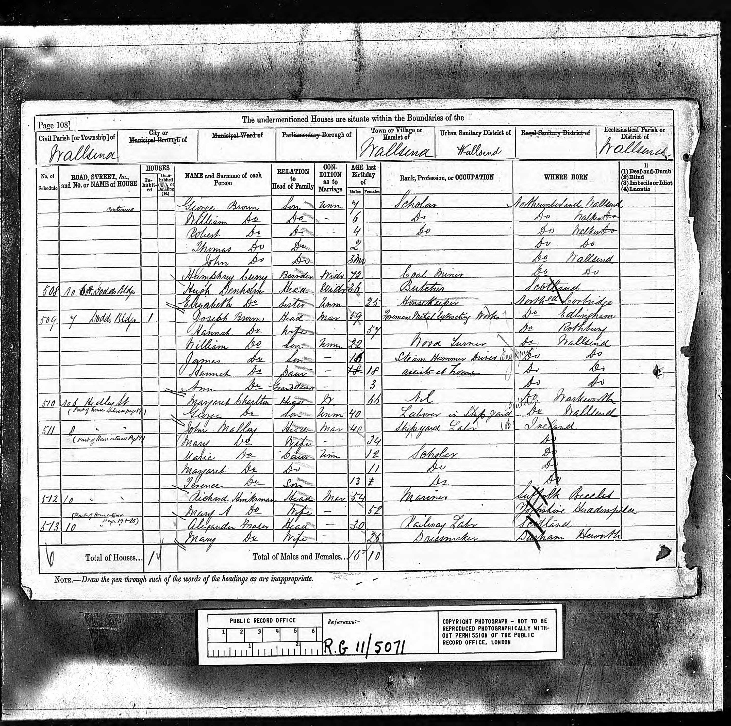 Class RG11, Piece 5071, Folio 117, Page 108, Schedule 512
