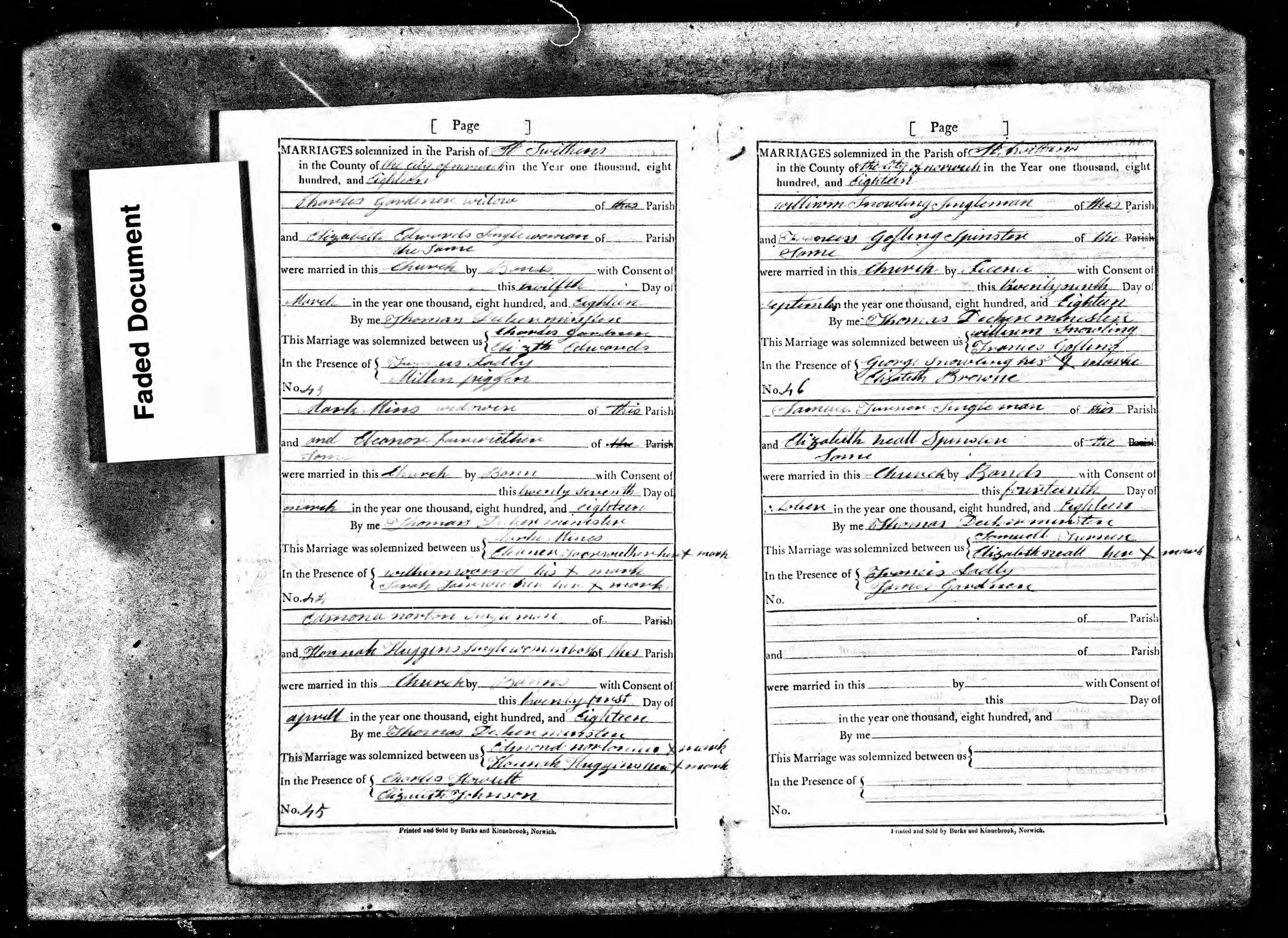 - William Snowling★ and Frances Gosling★ married on 29 Sep, 1818 in Norwich St. Swithin