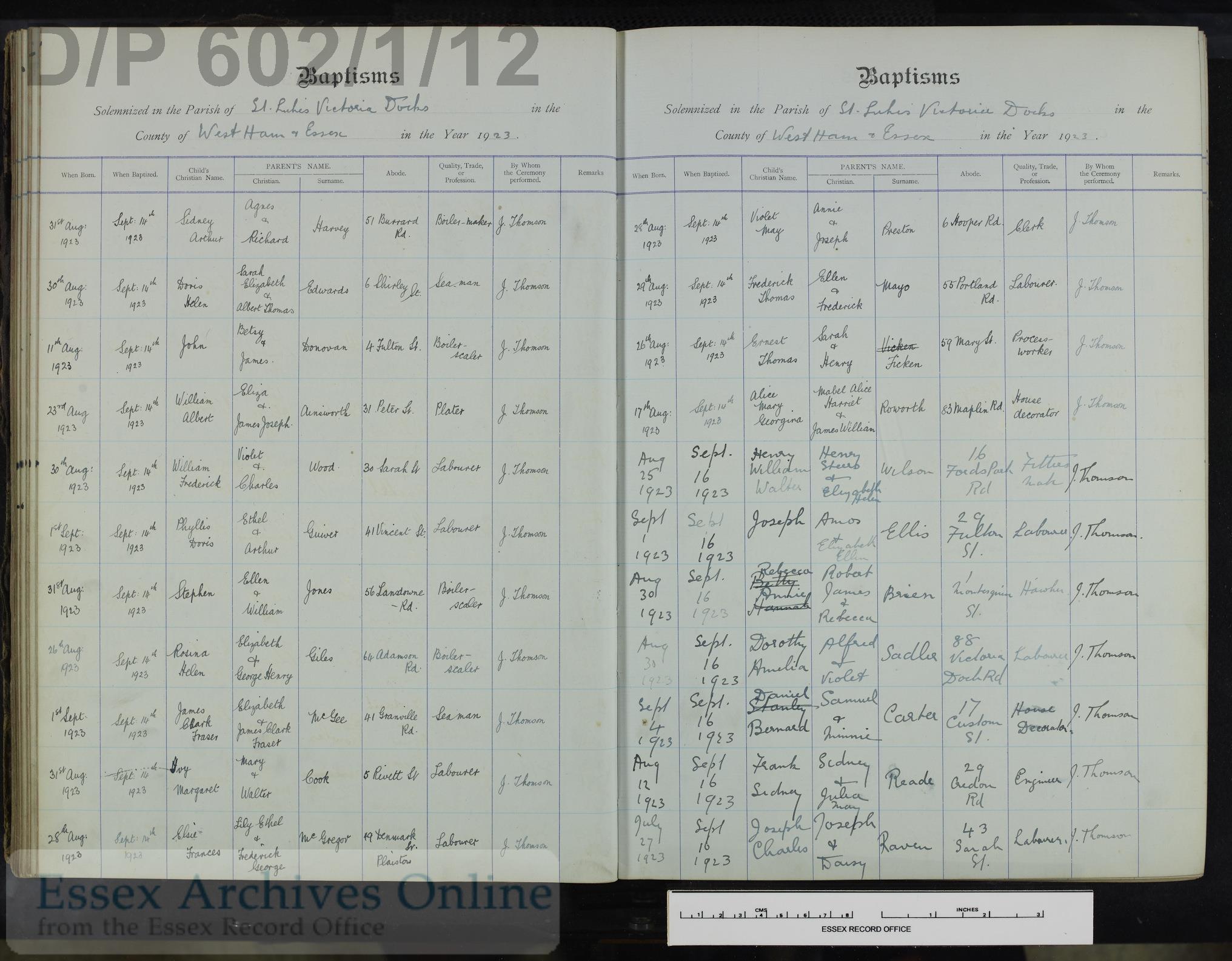 Cited from Parish Registers of St. Luke, Victoria Docks, Essex