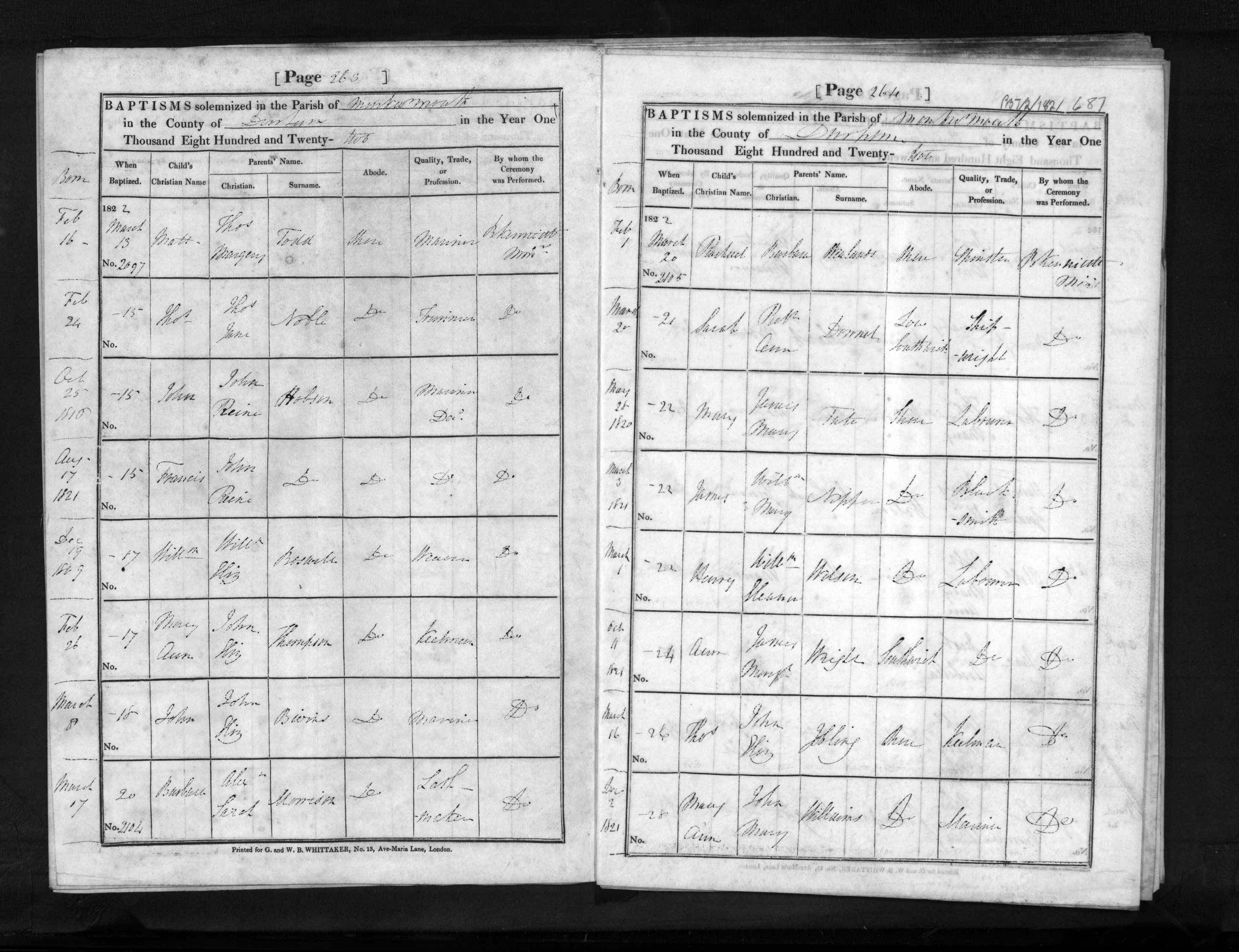 - Thomas Todd★ resided on 13 Mar, 1822 in Monkwearmouth Shore