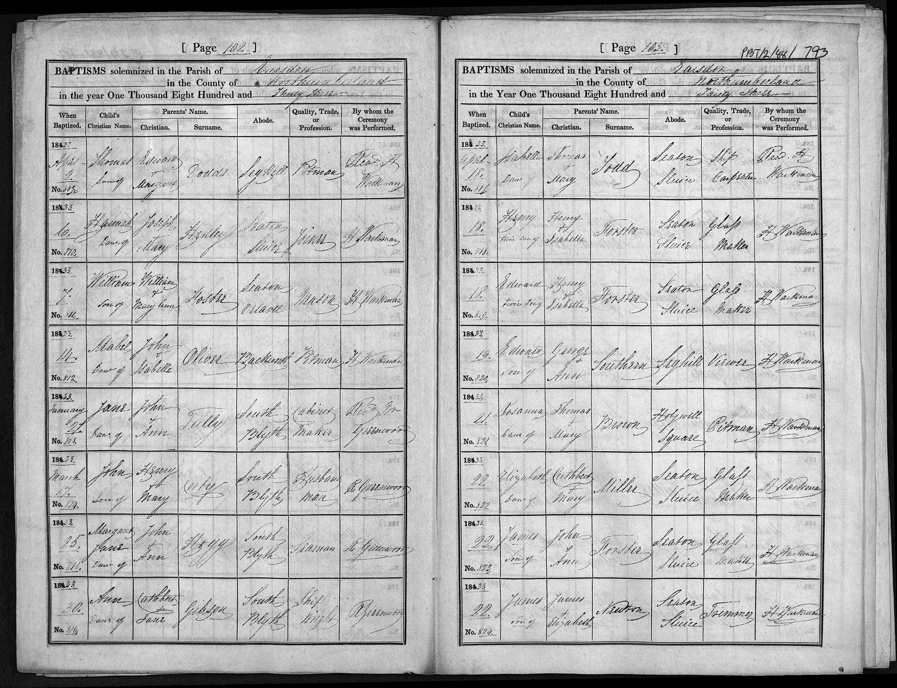 - Cuthbert Miller★ resided on 22 Apr, 1833 in Seaton Sluice, Northumberland