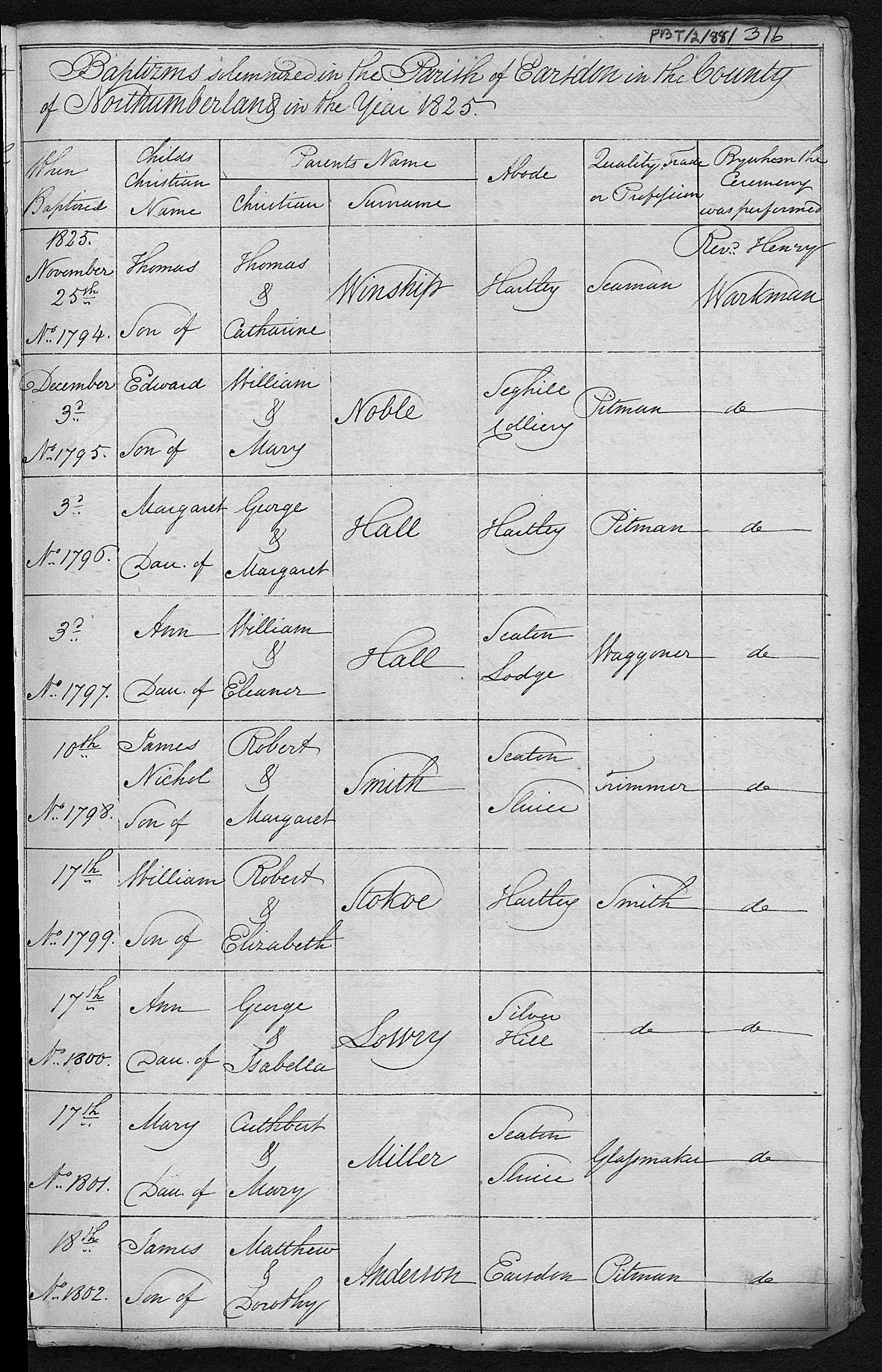 - Cuthbert Miller★ resided on 17 Dec, 1825 in Seaton Sluice, Northumberland