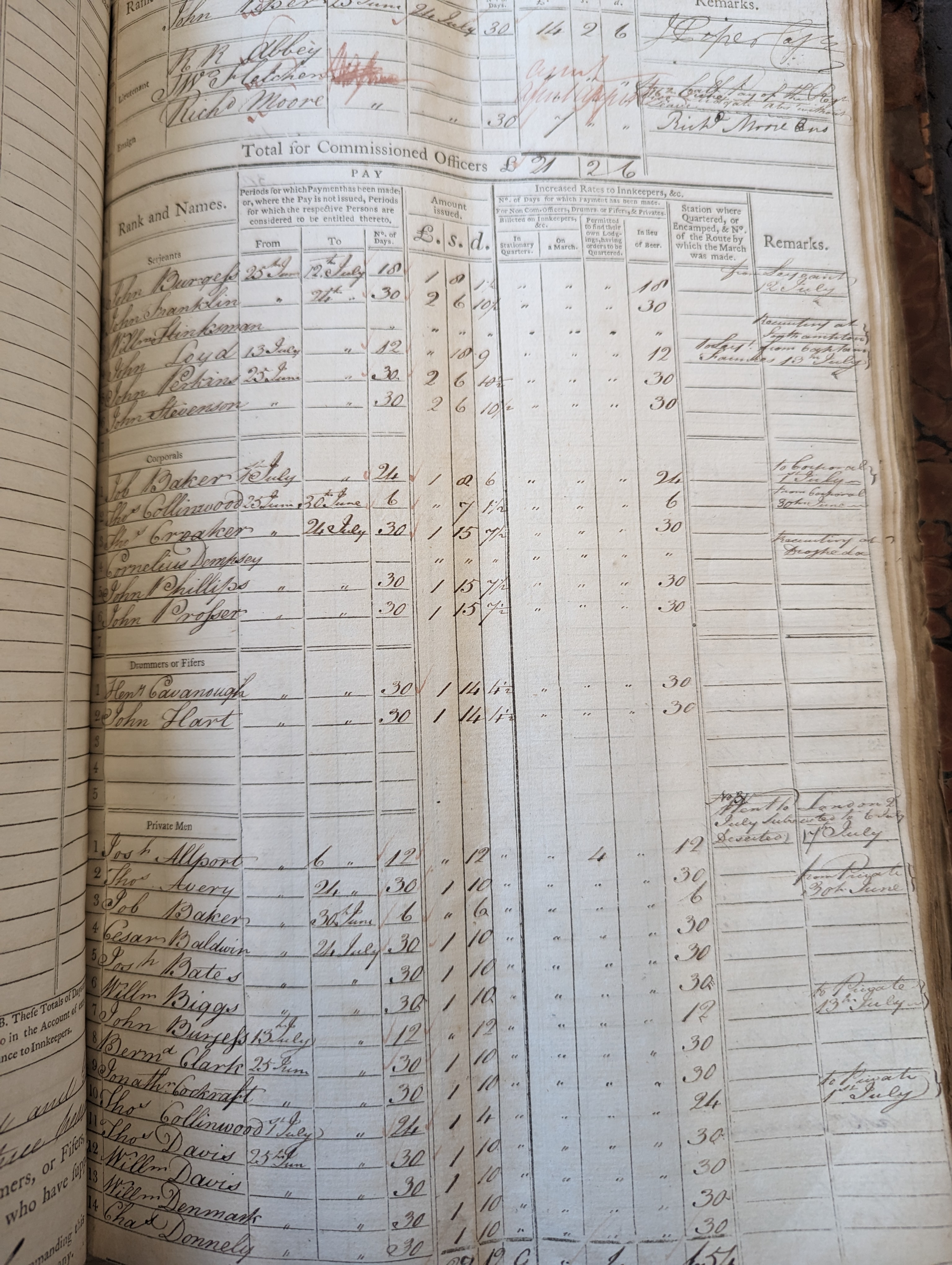 William Hinksman, sergeant in Captain Piper’s company. Remarks: “recruiting at Southampton”