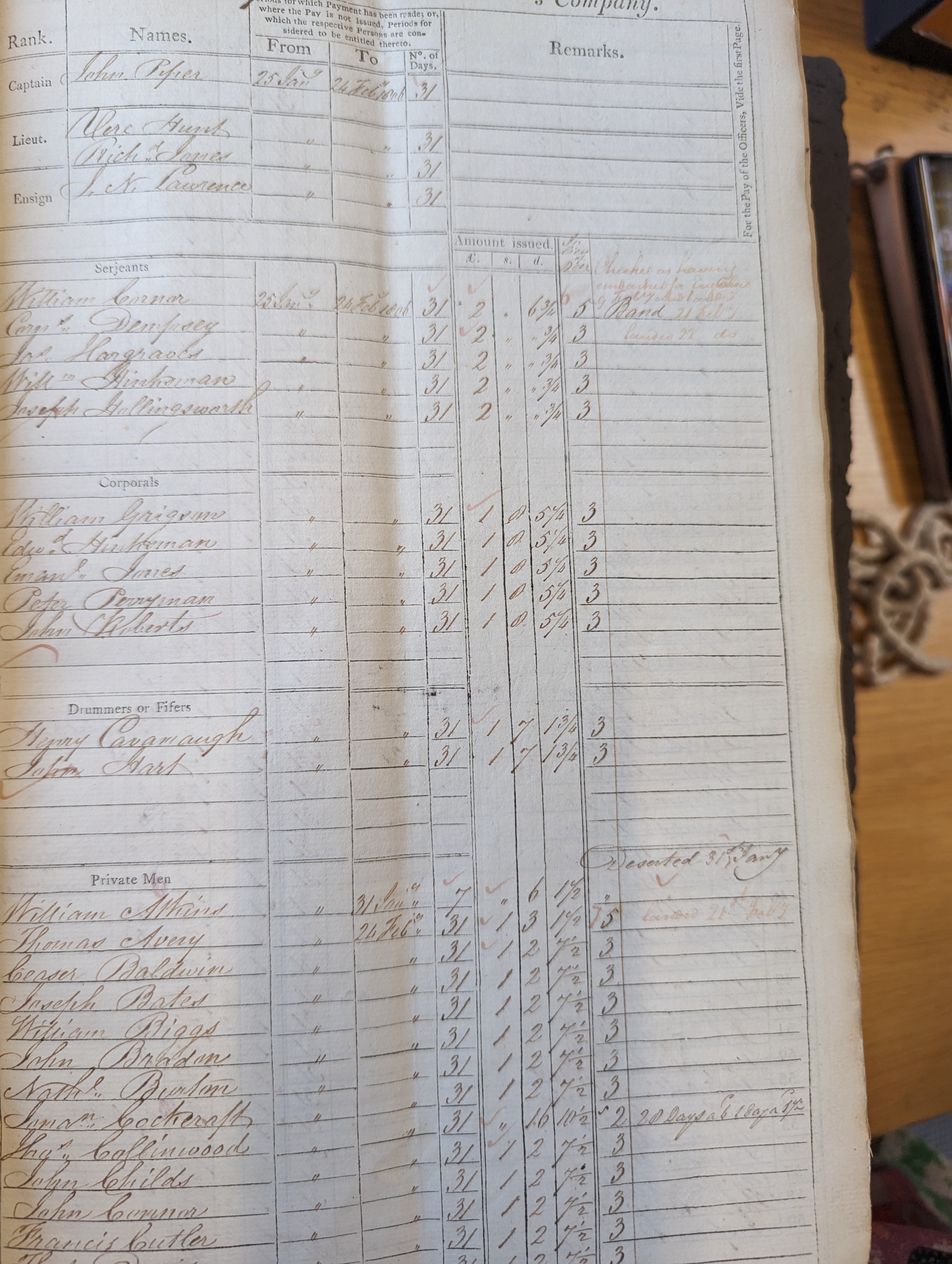 Cited from General Muster Books and Pay Lists, WO 12/2204, 4th Foot 1st Battalion, 1806-1808