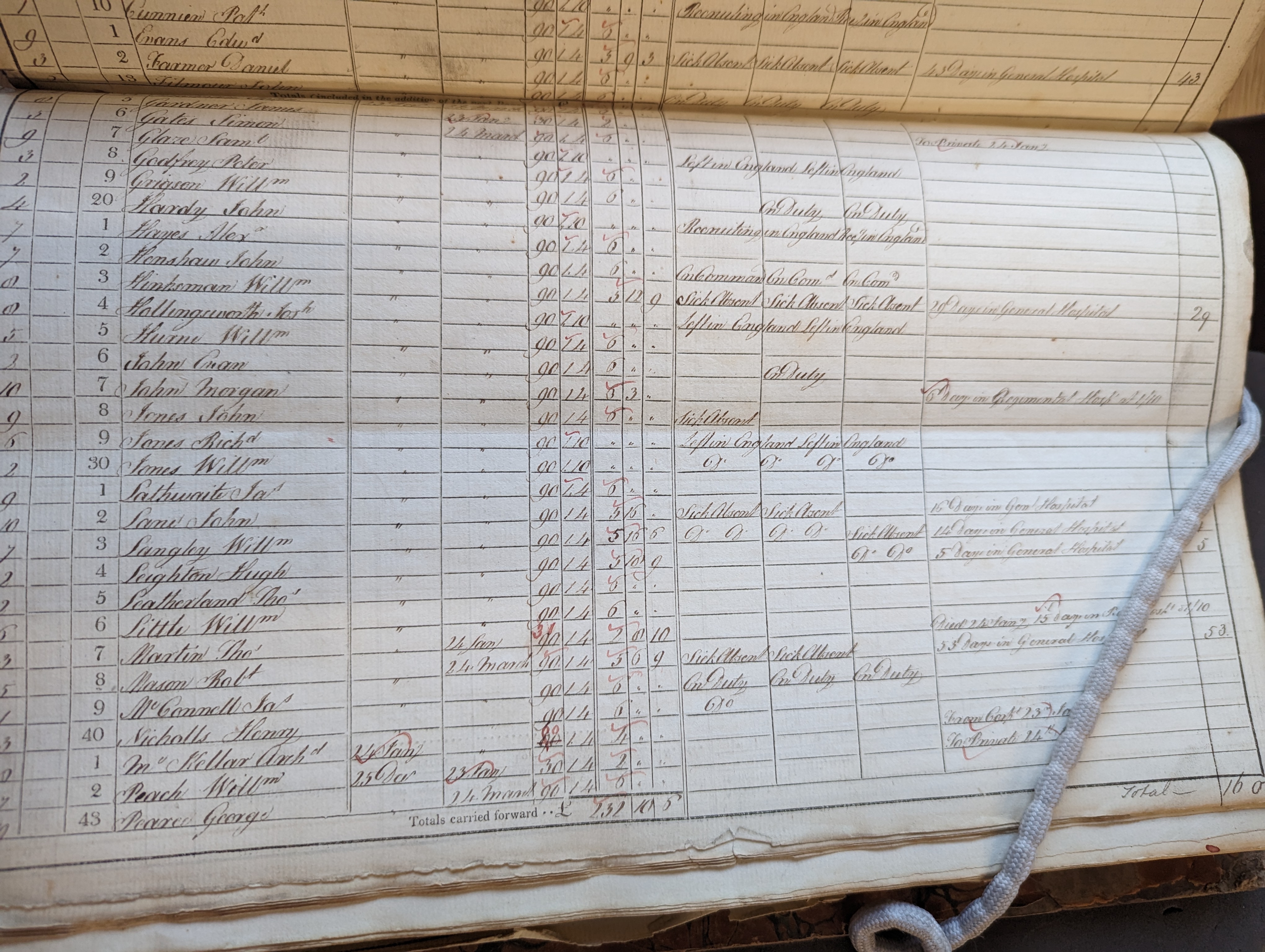 Willm Hinksman, sergeant, company 8. Absent from all three musters with the reason “Sick Absent”. Remarks: “29 days in general hospital.”