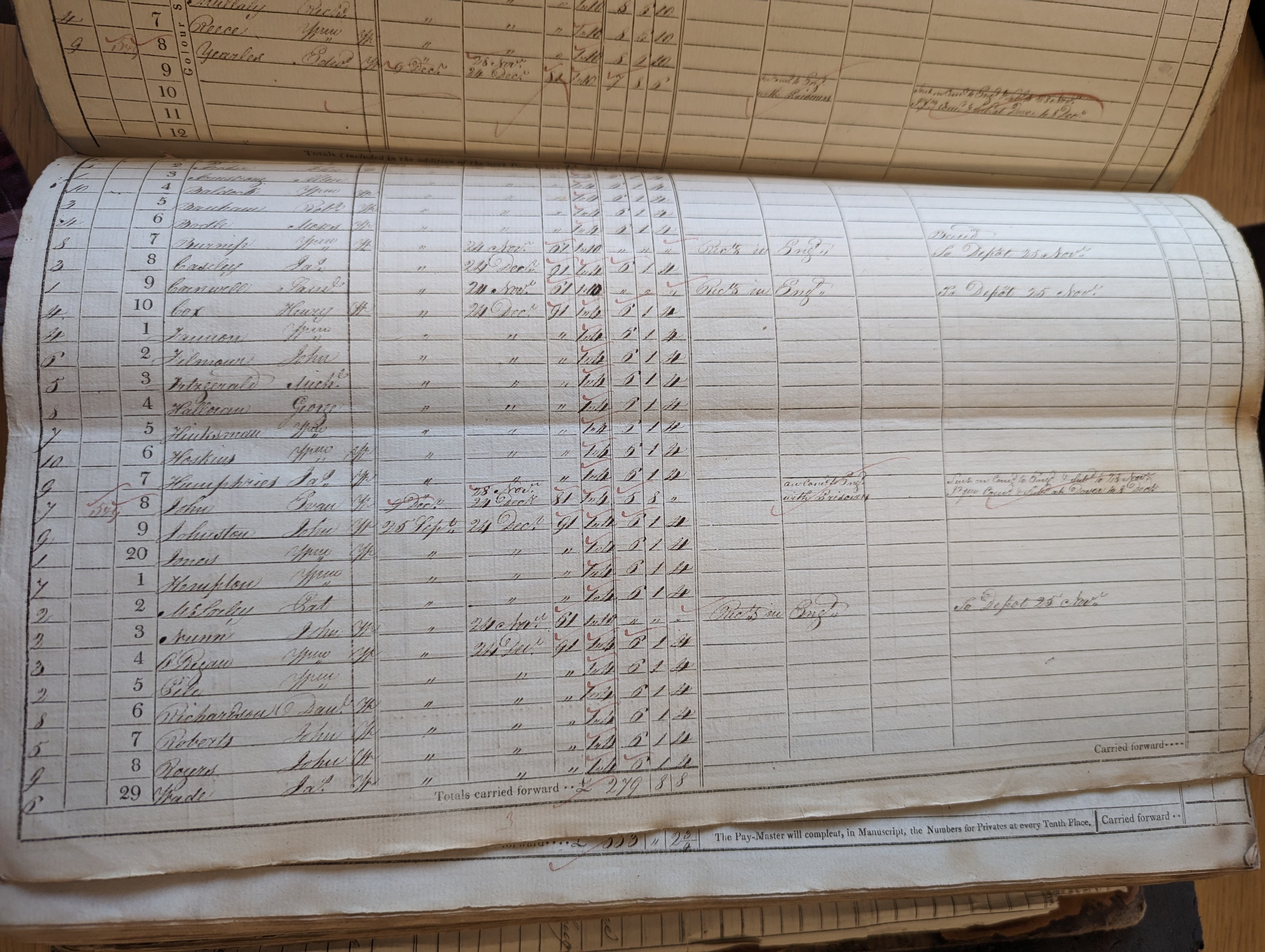 MusterRollFor4thFoot1stBatt1817DecAbroad_WO12_2208_WilliamHinksman