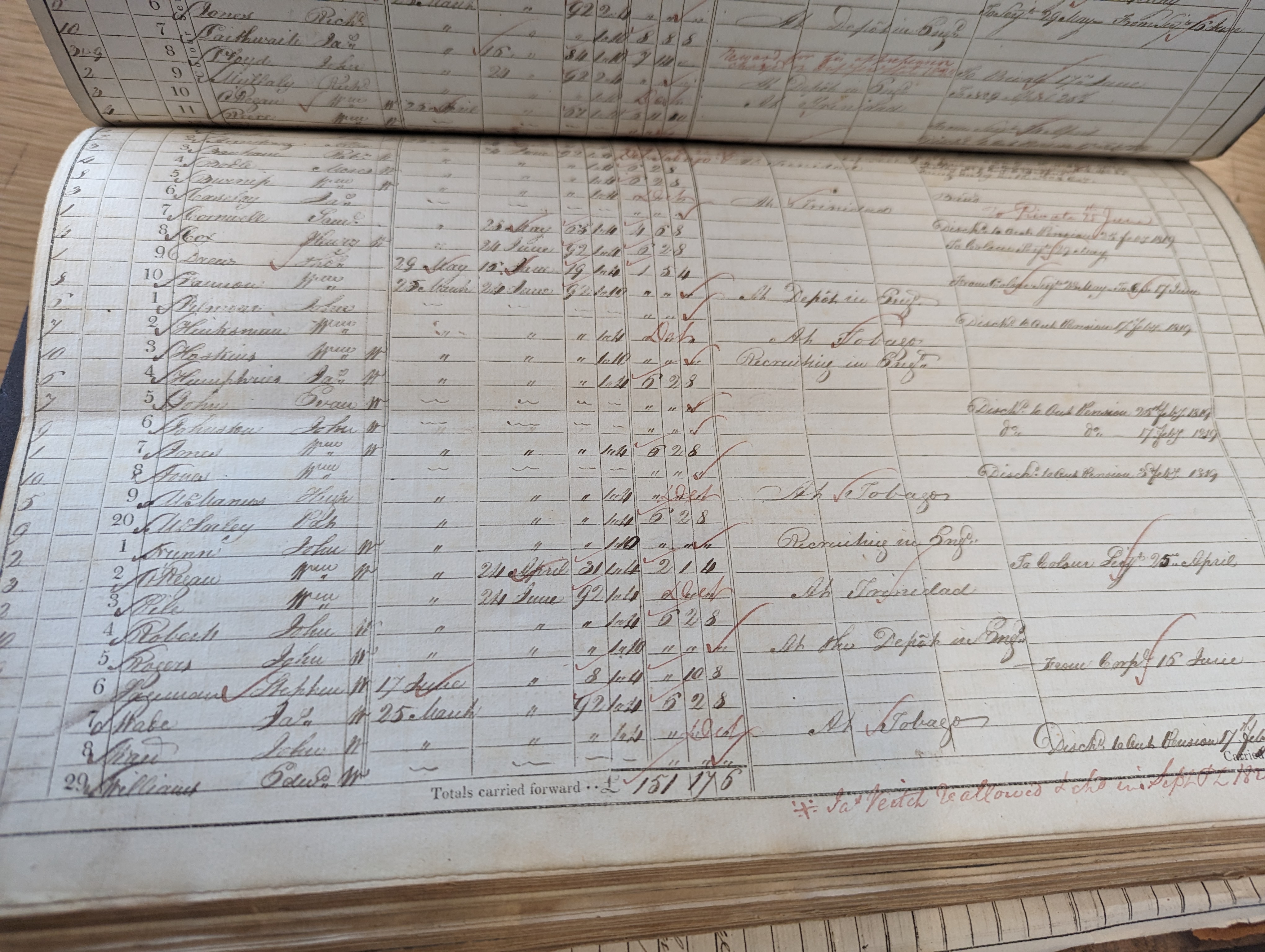 Wm Hinksman, sergeant, company 7. Absent from all three musters with reason: “at Tobago”