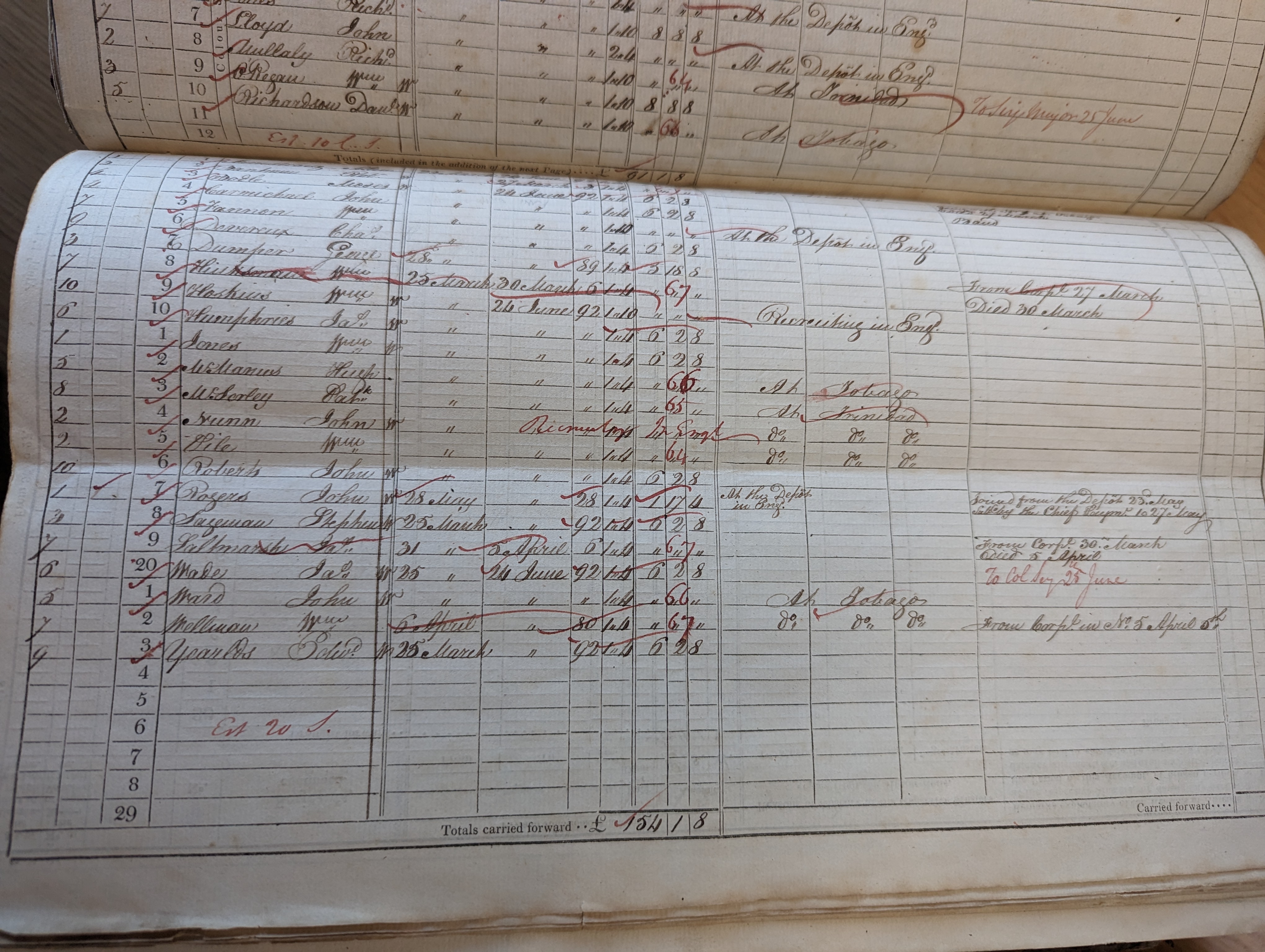 Cited from General Muster Books and Pay Lists, WO 12/2209, 4th Foot 1st Battalion, 1820-1822
