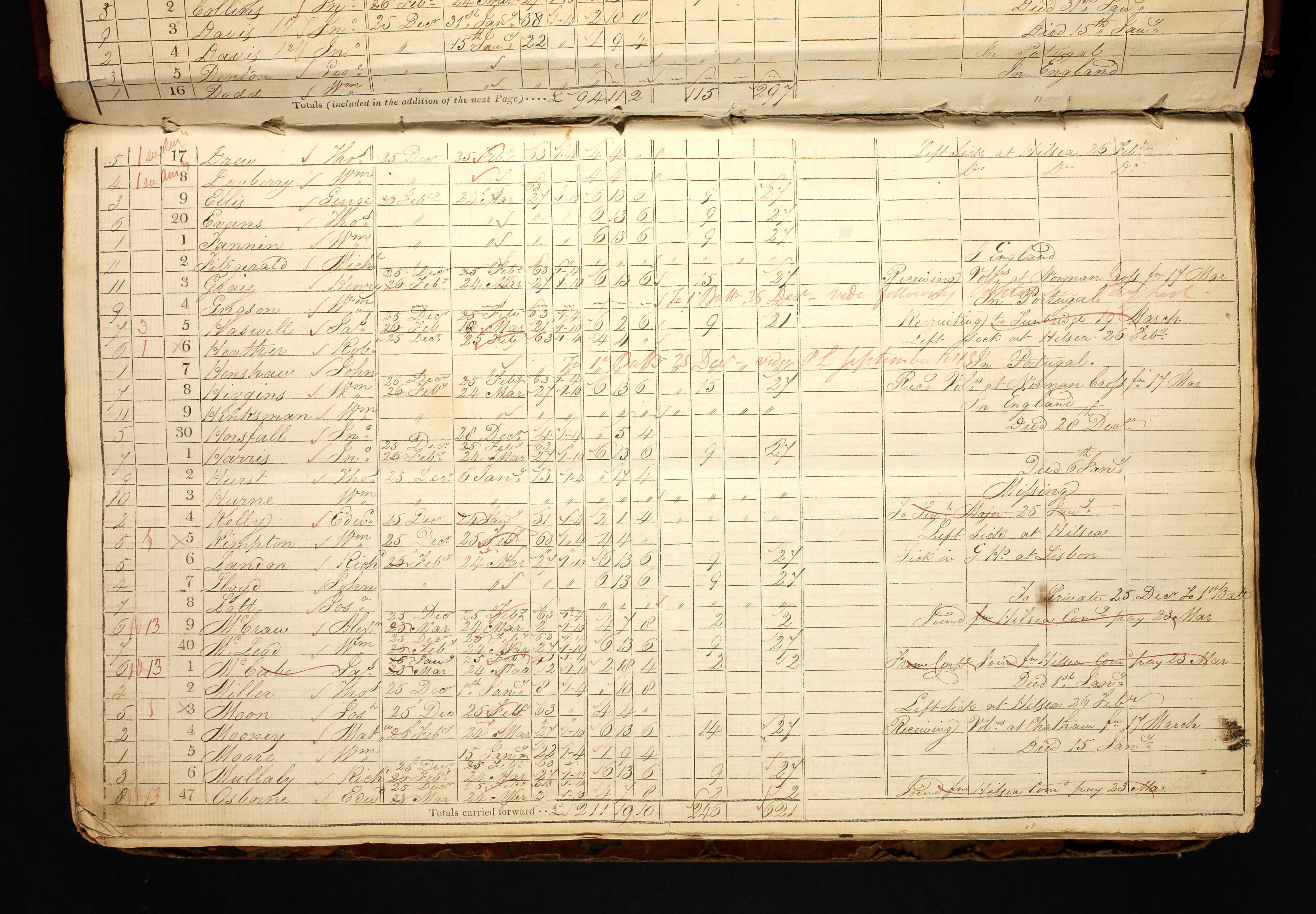 William Hinksman, serjeant, paid 25 Dec to 24 Mar, company 11 [no corresponding company in the list of captain’s certificates], noted as “In England”